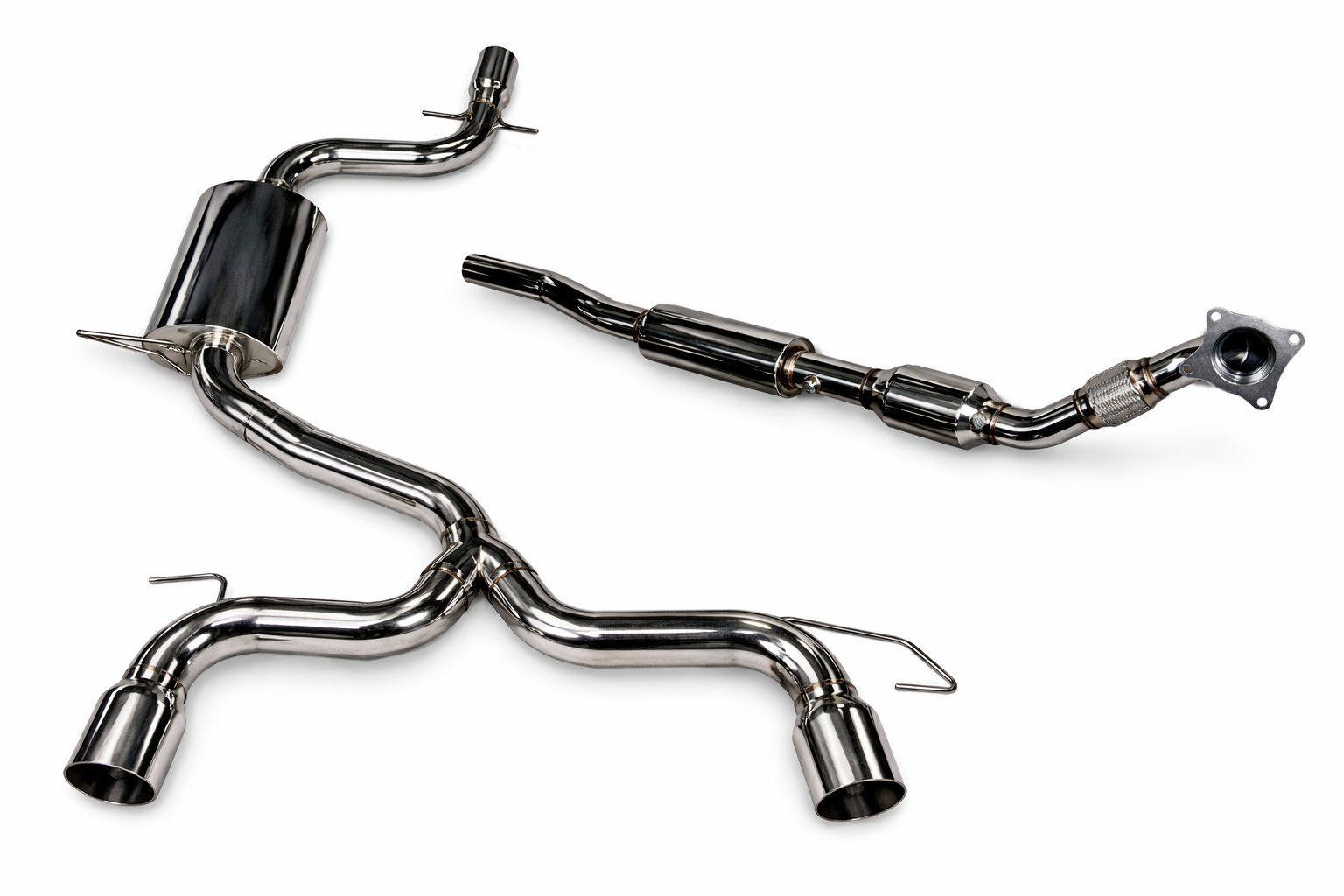 Le ligne comprend: Le downpipe cata-sport, l'intermédiaire et le silencieux double sortie